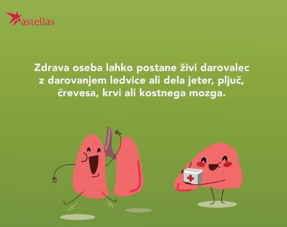 V Sloveniji so leta 2019 presadili 105 organov, na aktivno čakalno listo za presaditev organov pa je bilo prijavljenih 134 oseb. V letošnjem letu je na aktivni listi prijavljenih 156 oseb. Ob Evropskem dnevu darovanja in presaditve organov, ki ga obeležujemo 10. oktobra ter v okviru kampanje »Kaj vas spodbudi k darovanju?« so strokovnjaki na spletni konferenci v organizaciji družbe Astellas Pharma opozorili na pomembno vlogo darovanja organov, saj je transplantacija organov ali tkiv pogosto edini način, da se bolniku reši življenje.